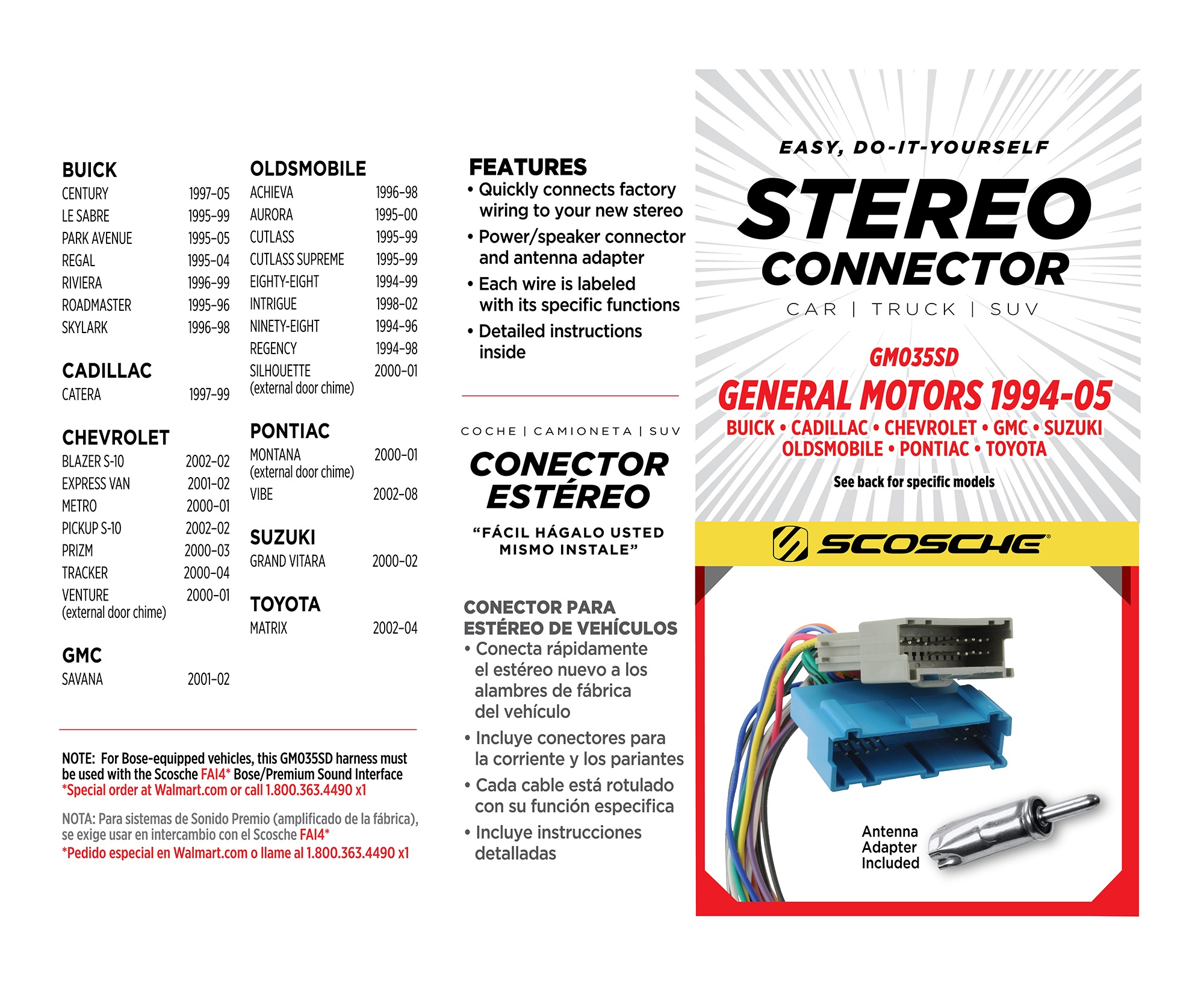 Scosche Gm035sd Gm Car Truck Suv Car Wiring Harness Connector Walmart Com Walmart Com